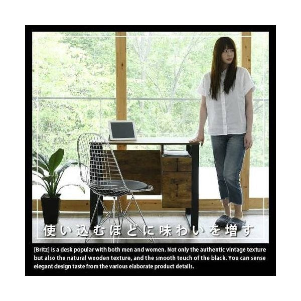 カフェの雰囲気を演出できる、ヴィンテージ風シートがおしゃれな西海岸のデスク。無骨すぎないデザインで男女問わずご使用いただけます。便利な大小2杯の引き出し付きで、下段にはA4ファイルも収納可能。