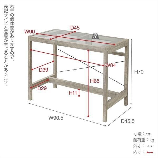 kag-37994 パソコンデスク 机 デスク PCデスク おしゃれ 北欧 シンプル オフィス パソコンラック 約 幅90 ガラス 古材風 古木 奥行45 シャビー 足置き 木製 pc リビング