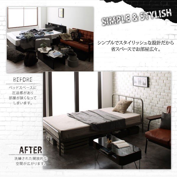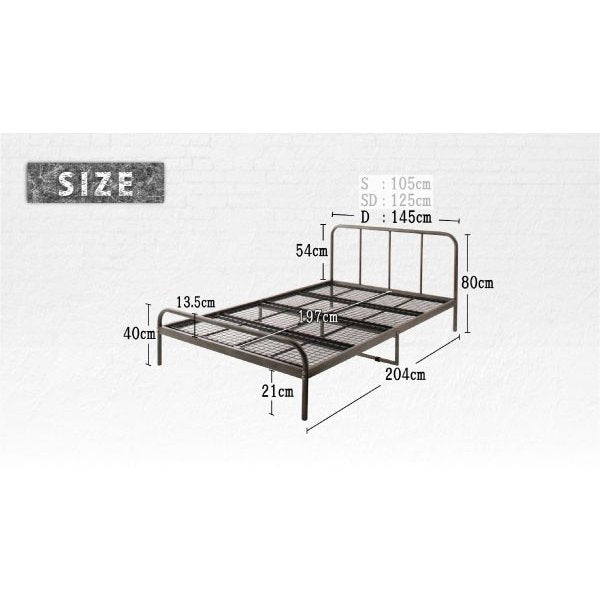 kag-53963 ダブルベッド 2人 マットレス付き パイプベッド アイアン スチール 金属 ヘッドボード 薄型 脚付き 足付 ルンバ 土台 ヴィンテージ メンズ モダン レトロ