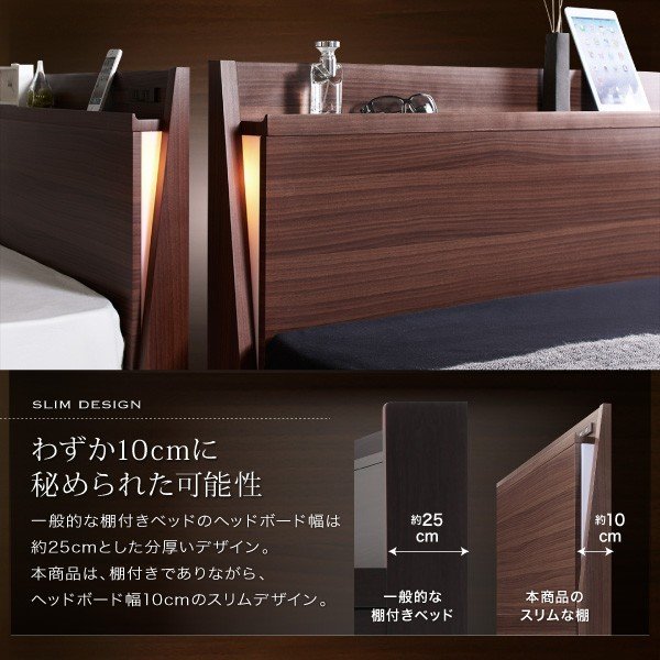 kag-53981 ダブルベッド 2人 マットレス付き チェスト ベッド下 収納 引き出し 大容量 宮 棚 携帯 リモコン 照明 読書灯 ライト 電気 コンセント スマホ 充電 ヴィンテージ