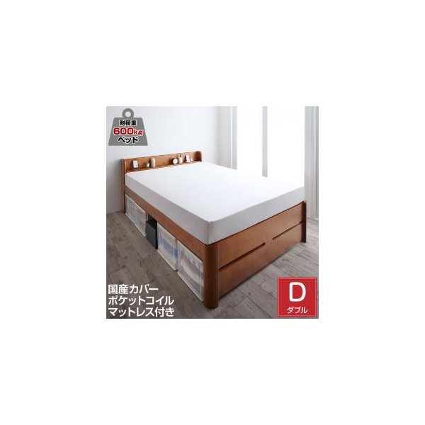kag-54191 ダブルベッド 2人 マットレス付 ベッド下 収納スペース 高い 床下 全面収納 高さ調節 ロー 低い 棚 携帯 コンセント スマホ 布団可 すのこ 通気性 カビ 脚 足