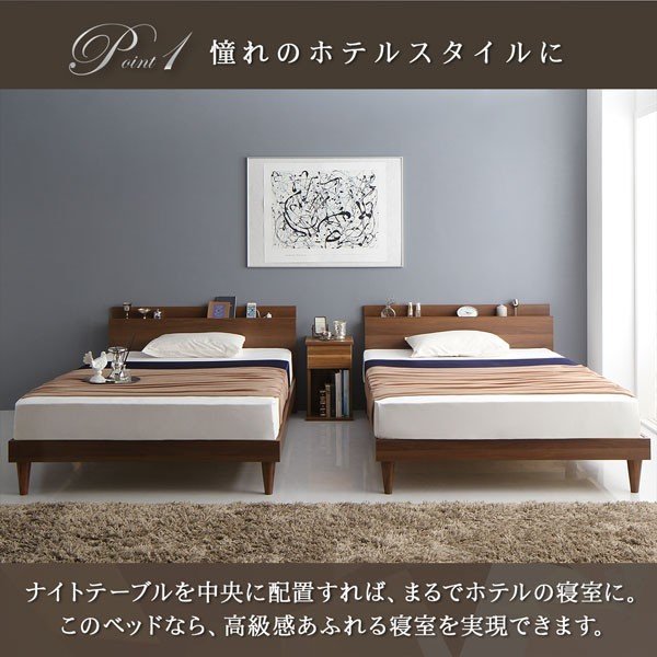 kag-54277 連結ベッド ワイド 2人 3人 4人 家族 つなげる 2台 分割 ファミリー マットレス付 ロー 低い 棚 携帯 収納 コンセント スマホ 布団可 すのこ 通気性 カビ 脚 足