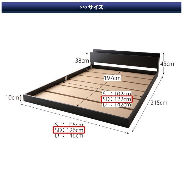 セミダブル:(約)幅126x長さ215x高さ45cm