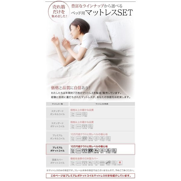 ※本製品はスプリングマットレス使用を基準とし強度計算されております。床板にはかならずスプリングマットレスを敷いてご使用ください。