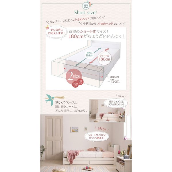 セミシングルベッド 一人暮らし コンパクト ショート丈 SS 小さい ミニ 省スペース フレームのみ チェストベッド ミドル ベッド下収納 引き出し付き 大容量 宮付き ヘッドボード 枕元 棚 ラック 携帯置き ティッシュ置き メガネ置き リモコン 頭上 収納 コンセント ゲーム ケーブル スマホ 充電 電気 姫系 かわいい ガーリー シャビー アンティーク プリンセス