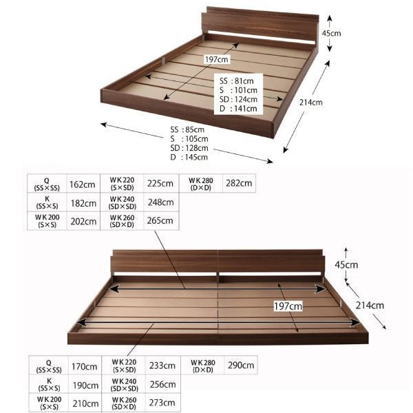 kag-41122 連結ベッド 幅280 ワイド 2人 3人 4人 家族 つなげる 2台 分割 ファミリー 親子 マットレス付き ローベッド 低い 宮 棚 携帯 収納 コンセント スマホ 充電