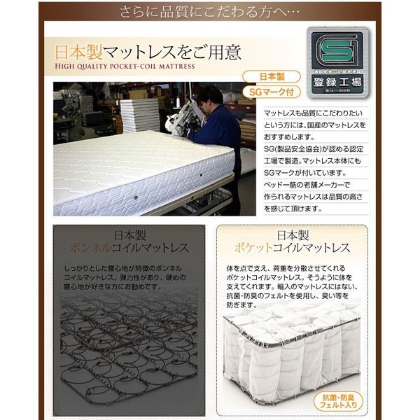 ※こちらのベッドはスプリングマットレスを乗せてご使用いただく事を前提に設計されております。