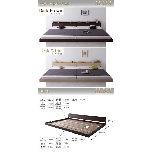 kag-42524 連結ベッド 幅260 ワイド 2人 3人 4人 家族 つなげる 2台 分割 ファミリー 親子 マットレス付き ローベッド 低い 宮 棚 携帯 収納 コンセント スマホ 充電