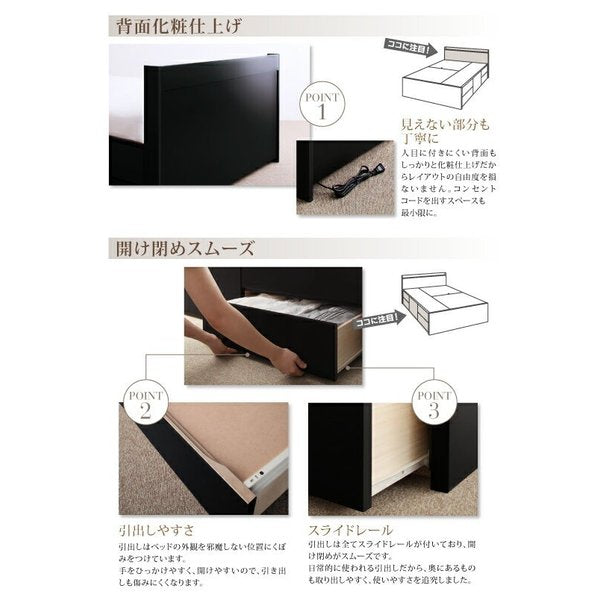 シングルベッド 一人暮らし フレームのみ チェストベッド ミドル ベッド下収納 引き出し付き 大容量 宮付き ヘッドボード 枕元 棚 ラック 携帯置き ティッシュ置き メガネ置き リモコン 頭上 収納 コンセント ゲーム ケーブル スマホ 充電 電気 デザイナーズ ホテル モダン 高級 メンズ