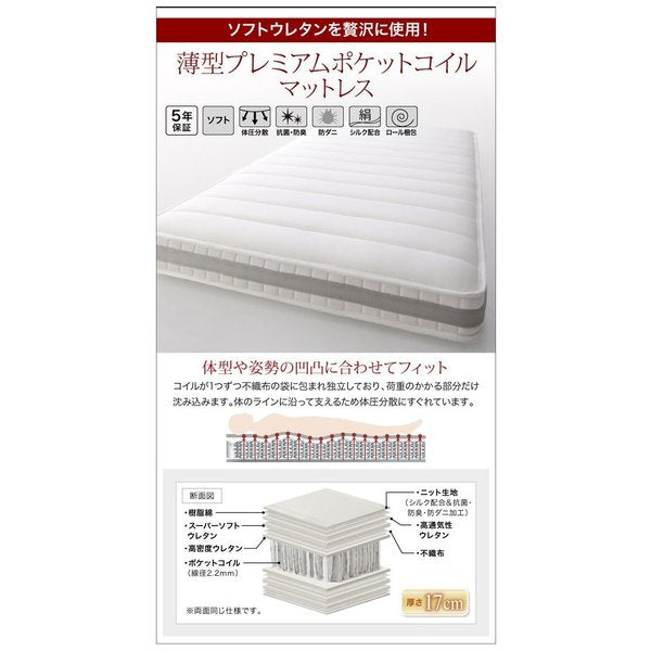 要組立 薄型プレミアムポケットコイルマットレス付き シングル