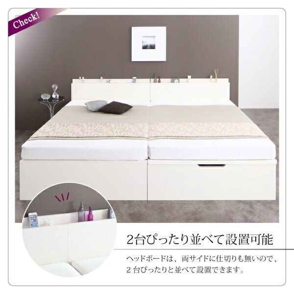 セミダブルベッド 一人暮らし SD マットレス付き 跳ね上げ式ベッド ガス圧 ベッド下 収納付き 大容量 宮付き ヘッドボード 枕元 棚 ラック 携帯置き ティッシュ置き メガネ置き リモコン 頭上 収納 コンセント ゲーム ケーブル スマホ 充電 電気 白 デザイナーズ ホテル モダン 高級 メンズ ホワイト