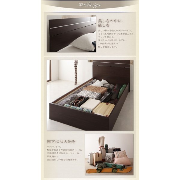 kag-43526 ダブルベッド 2人 マットレス付き ベッド下収納 収納付き 大容量 高い 床下収納スペース 全面収納 ヘッドボード 薄型 デザイナーズ ホテル モダン 高級 メンズ