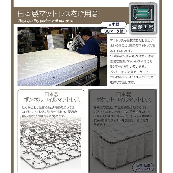※こちらのベッドはスプリングマットレスを乗せてご使用いただく事を前提に設計されております。