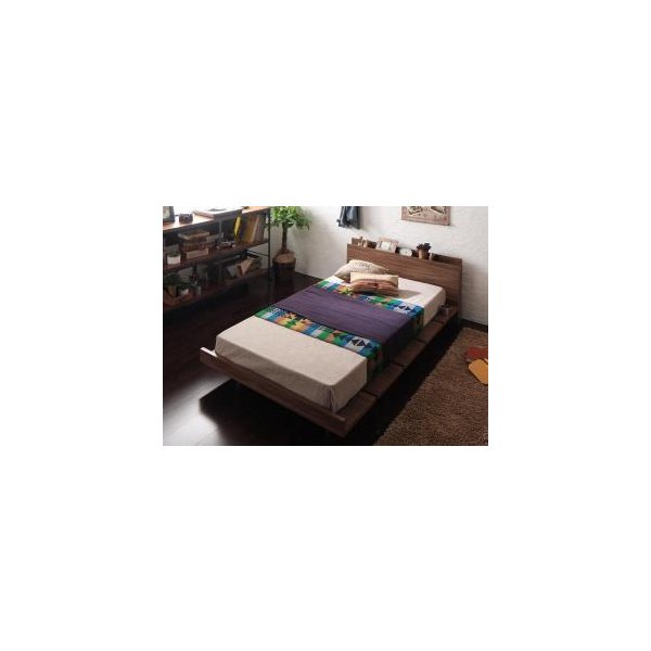 kag-43606 ダブルベッド 2人 マットレス付き ローベッド 低い 宮 棚 携帯 リモコン 収納 コンセント スマホ 充電 布団可 フラット床板 脚 足 北欧 おしゃれ アンティーク
