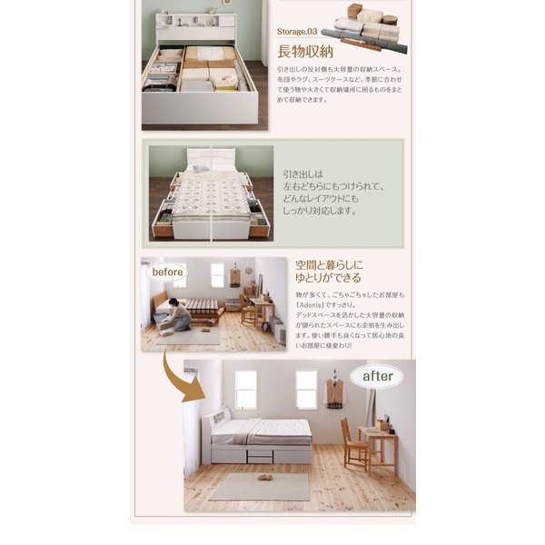 kag-44763 セミダブルベッド 一人暮らし SD フレームのみ チェスト ベッド下 収納 引き出し 大容量 宮 棚 携帯 リモコン 照明 読書灯 ライト 電気 コンセント スマホ 充電