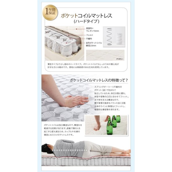 要組立 薄型プレミアムポケットコイルマットレス付き 横開 シングル 深さラージ