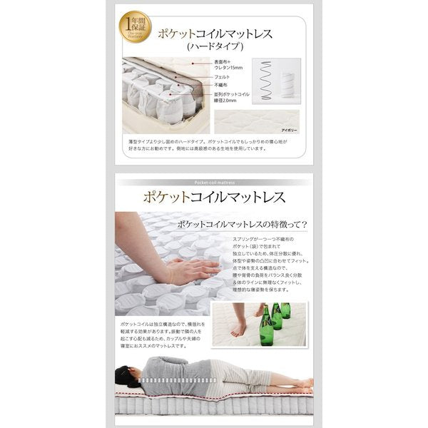 薄型プレミアムポケットコイルマットレス付き 横開 シングル 深さグランド