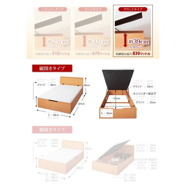 組立設置 薄型プレミアムポケットコイルマットレス付き 縦開 シングル 深さグランド
