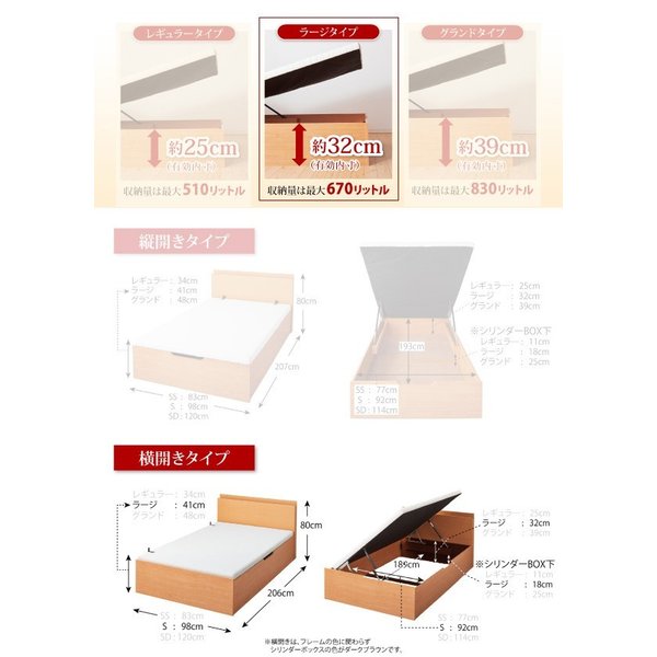 組立設置 ベッドフレームのみ 横開 シングル 深さラージ