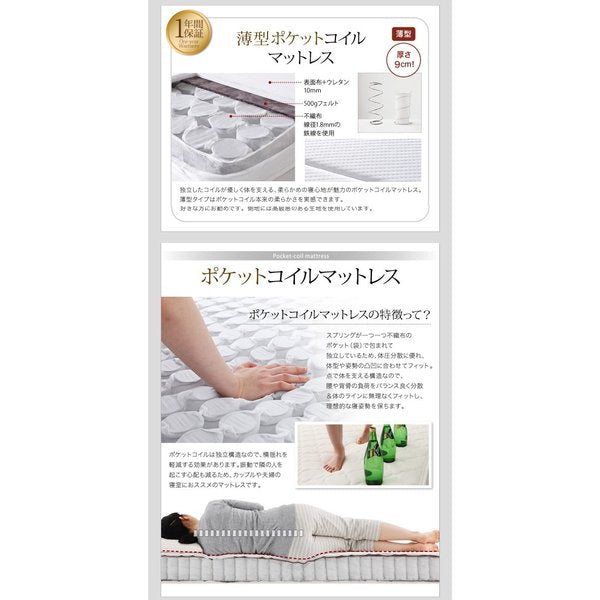 組立設置 薄型標準ポケットコイルマットレス付き 横開 シングル 深さグランド