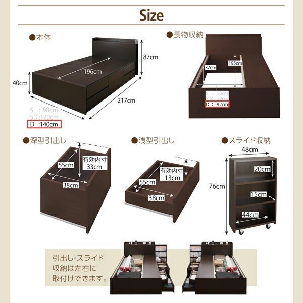 セミダブル:(約)幅72x長さ195x深さ37cm