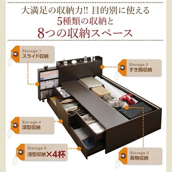 ダブルベッド 2人 マットレス付き チェストベッド ミドル ベッド下収納 引き出し付き 大容量 宮付き ヘッドボード 枕元 棚 ラック 携帯置き ティッシュ置き メガネ置き リモコン 頭上 収納 コンセント ゲーム ケーブル スマホ 充電 電気 ヴィンテージ メンズ モダン レトロ