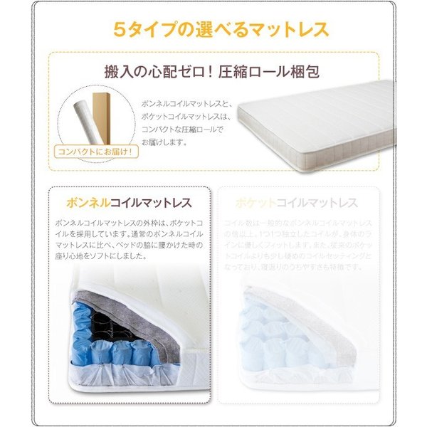 ※ベッドのフレームはスプリングマットレス使用時の基準で強度計算されております。