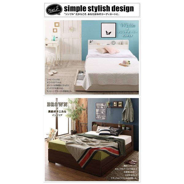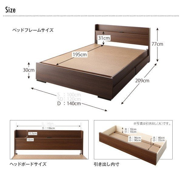 ダブルベッド 2人 マットレス付き チェストベッド ミドル ベッド下収納 引き出し付き 大容量 宮付き ヘッドボード 枕元 棚 ラック 携帯置き ティッシュ置き メガネ置き リモコン 頭上 収納 コンセント ゲーム ケーブル スマホ 充電 電気 デザイナーズ ホテル モダン 高級 メンズ