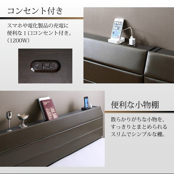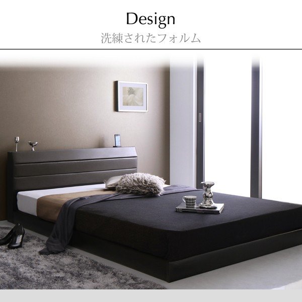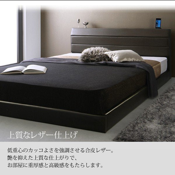 ダブルベッド 2人 マットレス付き ローベッド ロータイプ フロア 低床 低い 宮付き ヘッドボード 枕元 棚 ラック 携帯置き ティッシュ置き メガネ置き リモコン 頭上 収納 コンセント ゲーム ケーブル スマホ 充電 電気 すのこ 通気性 除湿 カビ レザー ゴージャス 高級 豪華 ゴシック デザイナーズ ホテル モダン メンズ 姫系