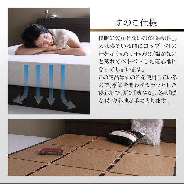 kag-49926 ダブルベッド 2人 マットレス付き ローベッド 低い 宮 棚 携帯 収納 コンセント スマホ 充電 すのこ 通気性 カビ レザー ゴージャス 豪華 ゴシック 姫系