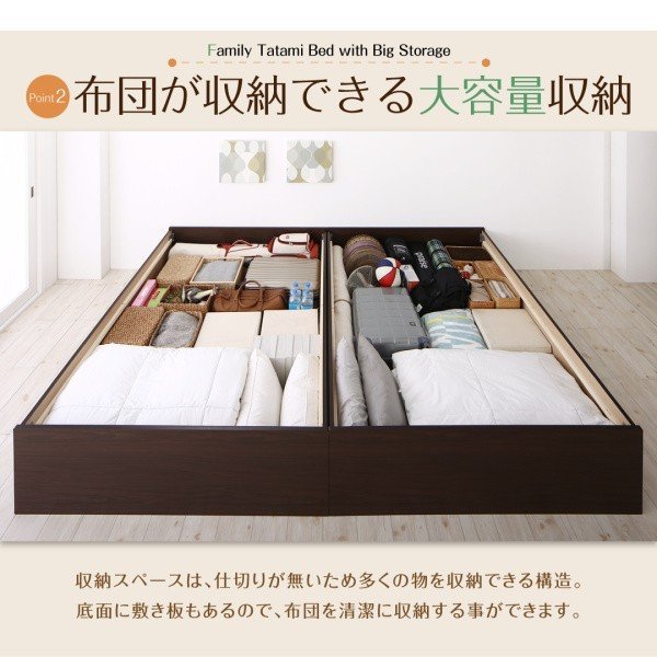 kag-51737 ダブルベッド 2人 フレーム 日本製 国産 畳 硬め 腰痛 通気性 カビ 和室 連結可 つなげる ベッド下 高い 床下収納 全面収納 ヘッドレス 布団可 布団収納