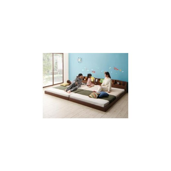 kag-51893 連結ベッド 幅200 キング ワイド 3人 4人 家族 つなげる 2台 分割 ファミリー マットレス付き ロー 低い 宮 棚 携帯 収納 照明 ライト コンセント スマホ 充電