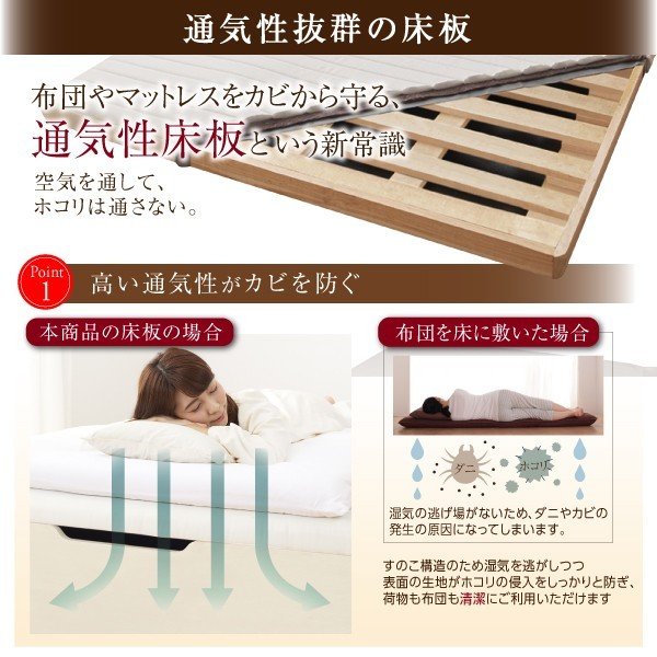 ※セミシングル・シングルは25kg以下、セミダブルは30kg以下のマットレスをご利用ください。重量が上記以下であっても、マットレスを別でご用意いただいた場合の開閉の動作については保証いたしかねます。