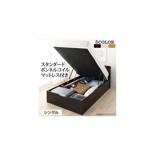 kag-54240 シングルベッド 一人暮らし マットレス付き 跳ね上げ式 ガス圧 ベッド下 収納付き 大容量 宮 棚 携帯 収納 コンセント スマホ 充電 布団可 すのこ 通気性 カビ