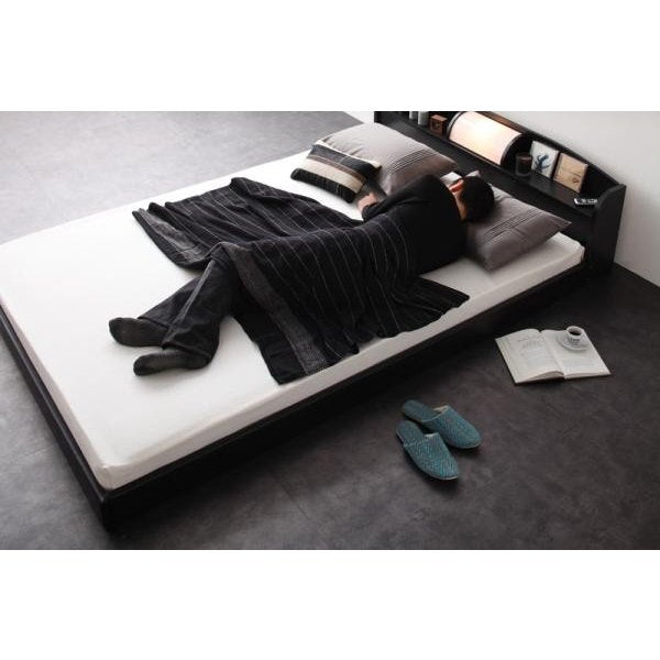 kag-9112 ベッド シングル ローベッド ロータイプ 低い フロアベッド 宮付き 枕元 棚 携帯 スマホ メガネ リモコン ラック ライト 読書 おしゃれ モダン 照明 普通丈