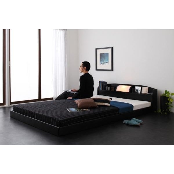 kag-9120 ベッド ダブル ローベッド ロータイプ 低い フロアベッド 宮付き 枕元 棚 携帯 スマホ メガネ リモコン ラック ライト 読書 おしゃれ モダン 照明 普通丈