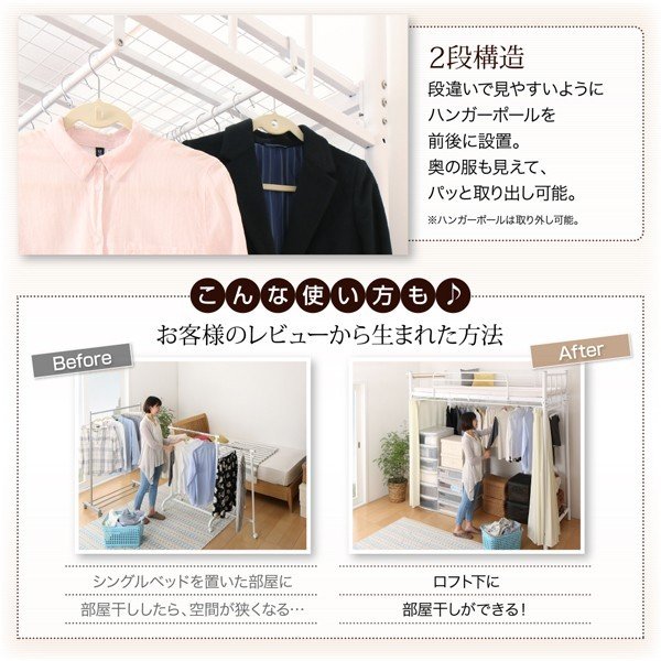 ベッドフレームのみ ハンガーポール付 ハイ シングル