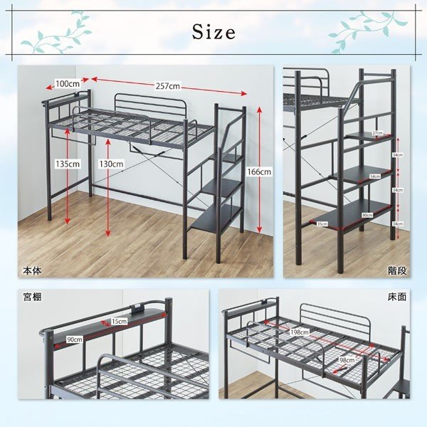 本体:約 幅100x長さ257x高さ166cm(マットレス面高さ135cm)