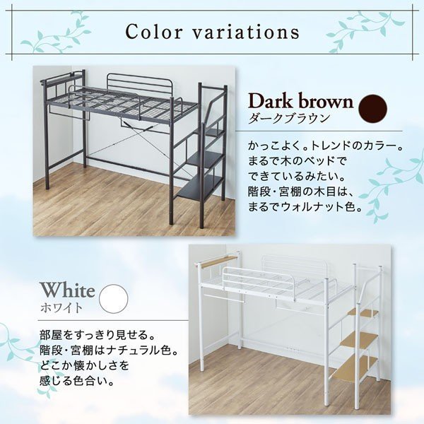 kag-49575 ロフトベッド シングル 一人 フレーム システム活用 安い 頑丈 子供部屋 パイプベッド アイアン スチール 金属 階段 棚 携帯 収納 携帯 スマホ コンセント