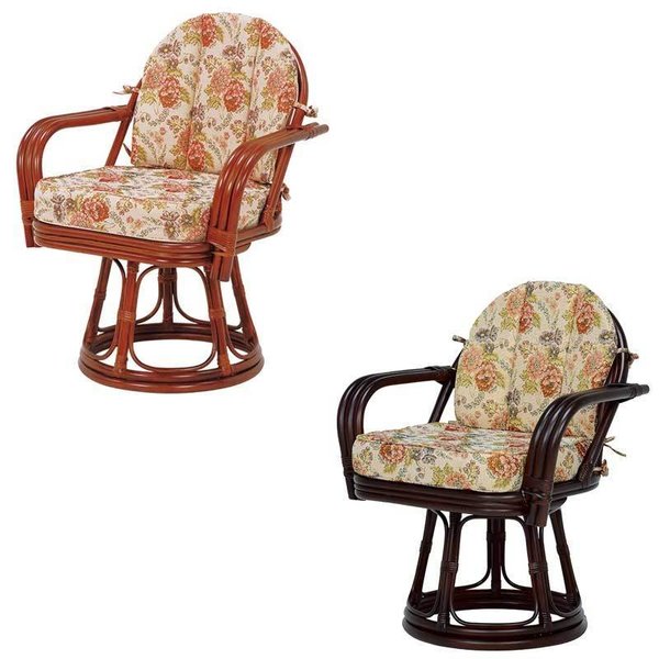 男性にもお勧め、ゆったりサイズのラタン回転椅子。脚が伸ばせて、手すり付きなので腰が痛い方でも立ち座りが楽に行えます。