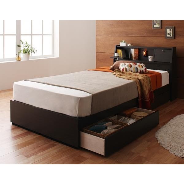 kag-10922 ダブル ベッド チェスト 引き出し 大容量 宮 棚 スマホ ラック ライト コンセント 充電 フレーム アンティーク 姫系 かわいい 照明 国産ポケットCマットレス付
