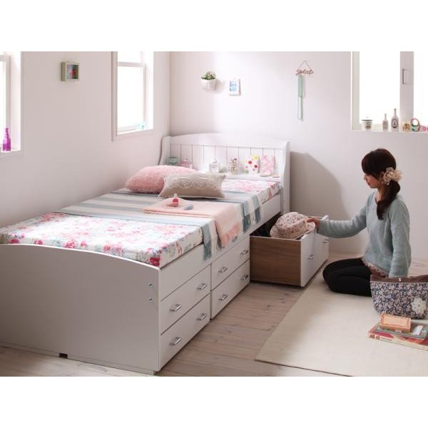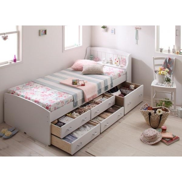 kag-3909 シングル ベッド チェスト 下収納 引き出し 大容量 姫系 アンティーク 宮 棚 スマホ リモコン ラック おしゃれ かわいい ガーリー シャビー プリンセス すのこ