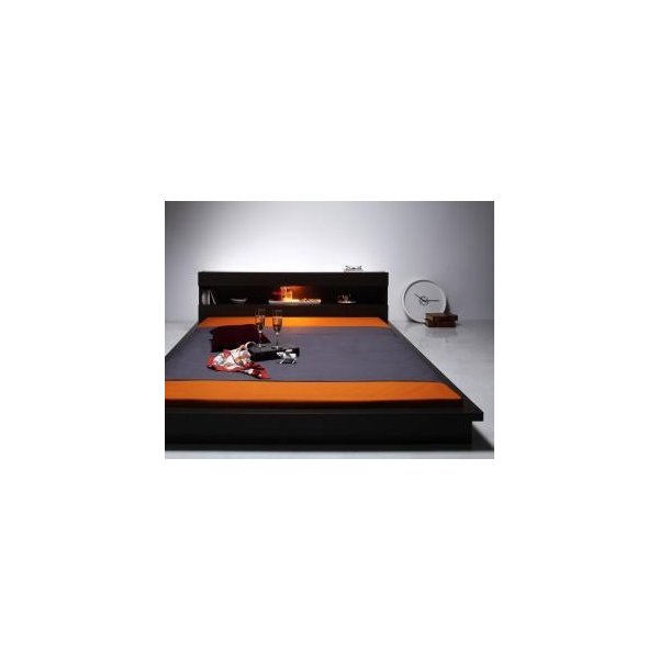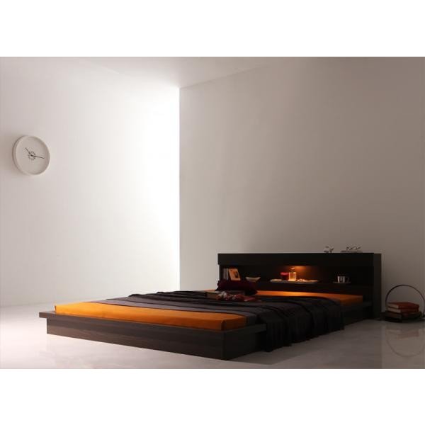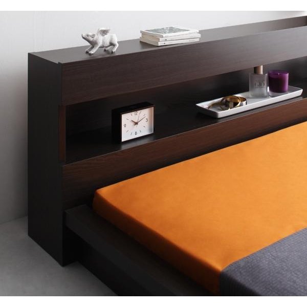 kag-3935 シングル ローベッド 宮 棚 スマホ リモコン ラック ライト フレーム おしゃれ ヴィンテージ コンセント 充電 照明 すのこ (ラテ入国産ポケットCマットレス付)