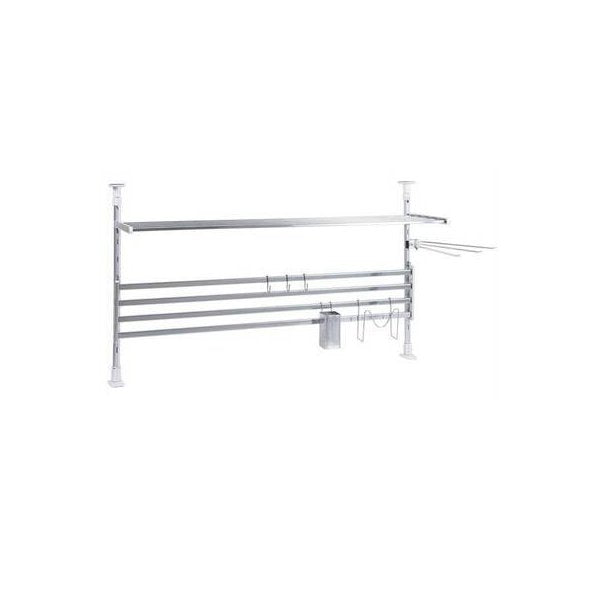 ワンタッチの「つっぱり支柱」で取り付けも簡単!壁に傷を付けずに取付できる便利なつっぱり棚です。つっぱり支柱の高さは55~90cmの間で調節できます。ふきん掛け、フック、角ポケット、まな板受けもセットになっているので、台所まわりがすっきり片付きます♪