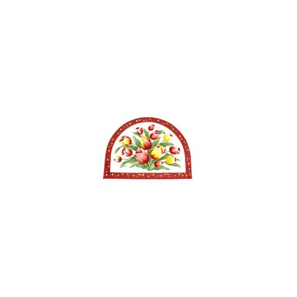 花柄の外側にそって、カービング加工をしているので柄を立体的に表現、はっきり浮き出て見えます。可愛らしいチューリップの明るい印象でお客様をお迎えする玄関にぴったりのマットです。