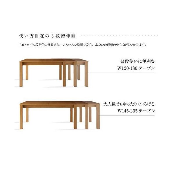 最大205cm 3段階伸縮 ワイドサイズデザイン ダイニング