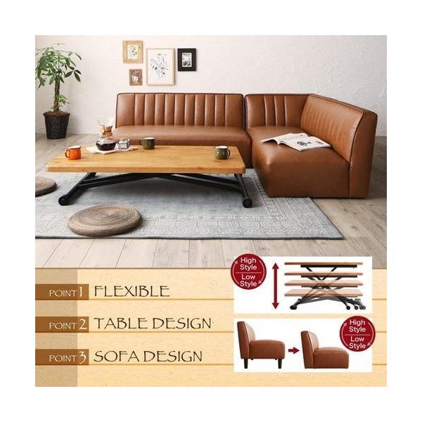 テーブルもソファも高さ調節できるリビングダイニングセット