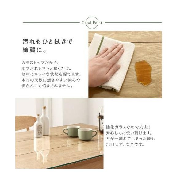 kag-32377 ダイニングテーブル おしゃれ 安い 北欧 食卓 テーブル 単品 モダン 会議 事務所 ( 机 幅115×70 ) 2人用 4人用 コンパクト 小さめ パイン 木製 ガラス クール