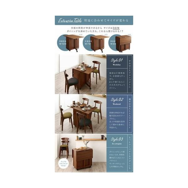 kag-32383 ダイニングテーブル おしゃれ 伸縮 伸長式 北欧 食卓 モダン 会議 ( 机 幅40 幅70 幅100 奥行65 ) 高さ68 2人用 4人用 コンパクト ウォールナット キャスター