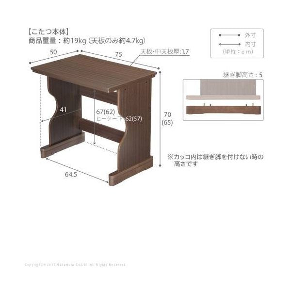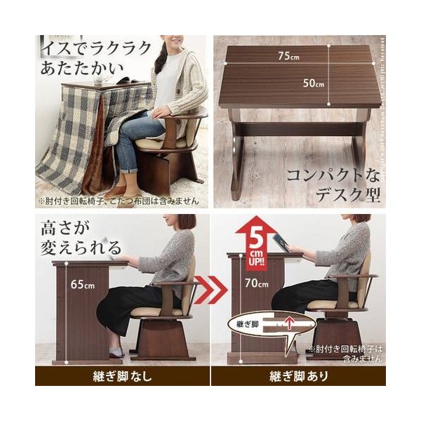 kag-36085 パソコンデスク こたつ 机 下 ヒーター 暖房 仕事 PC テレワーク 在宅勤務 勉強 ハイタイプ 椅子用 小さい コンパクト 一人暮らし 高さ65 高さ70 調節 75x50